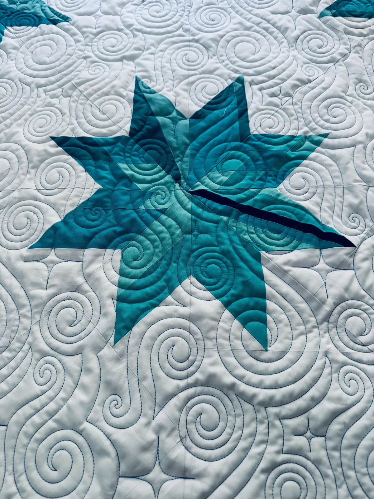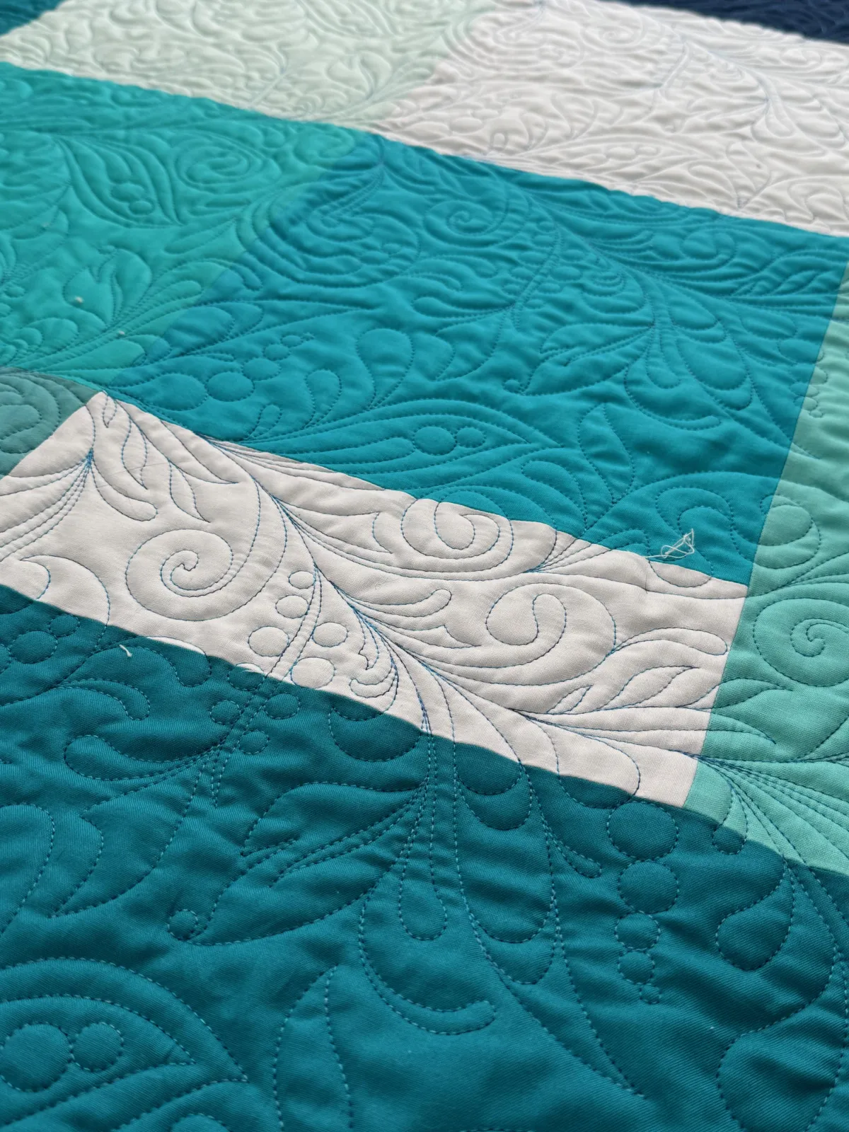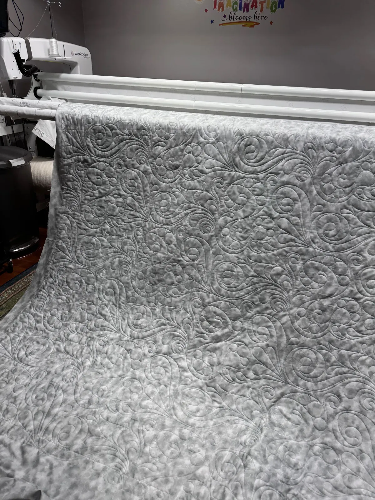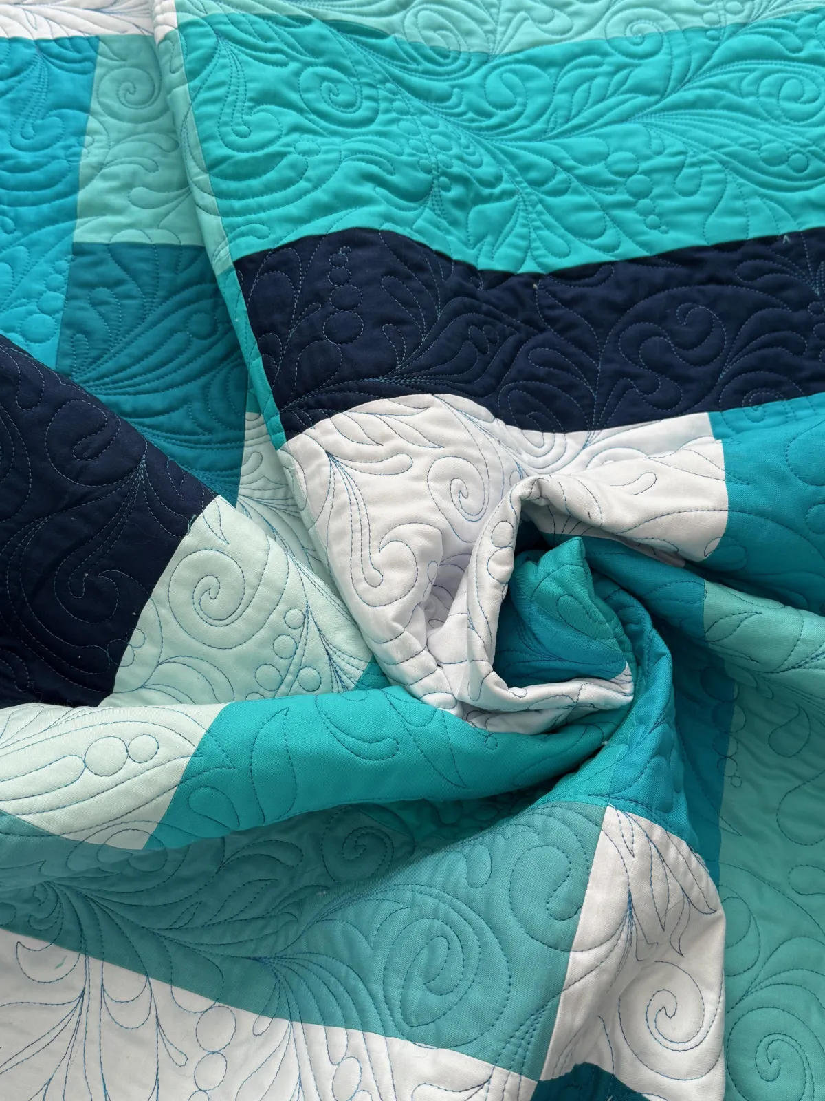 I offer all-over free motion quilting that fills spaces, enhances features, or gives your quilt movement.